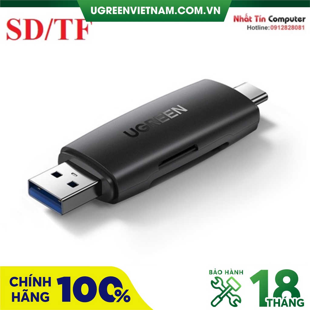 Đầu đọc thẻ nhớ SD/TF 2 trong 1 USB-A & USB-C Ugreen 80191 cao cấp