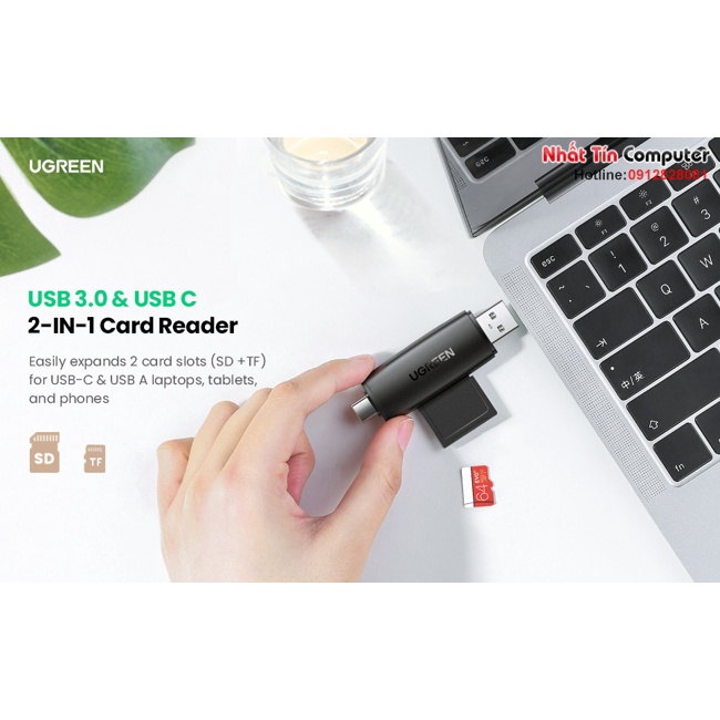 Máy tính & Laptop > Phụ Kiện Máy Tính > Bộ chia cổng USB & Đọc thẻ nhớ || Đầu đọc thẻ nhớ SD/TF 2 trong 1 USB-A & USB-C Ugreen 80191 cao cấpCòn hàng