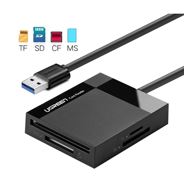 Máy tính & Laptop > Phụ Kiện Máy Tính > Bộ chia cổng USB & Đọc thẻ nhớ || Đầu đọc thẻ nhớ SD/TF/CF/MS chuẩn USB 3.0 Ugreen 30229 chính hãng màu đenCòn hàng