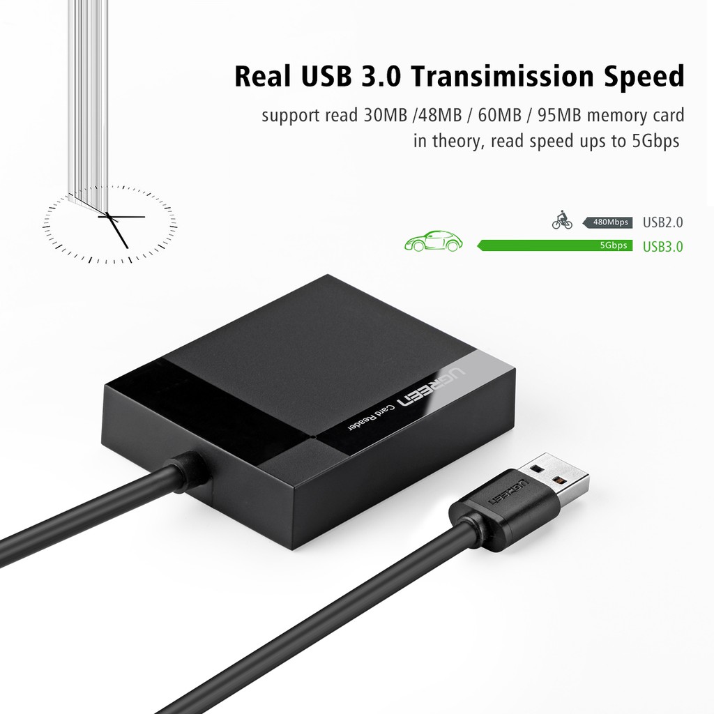 Thông số kĩ thuật đầu đọc thẻ nhớ SD/TF/CF/MS chuẩn USB 3.0 Ugreen 30231