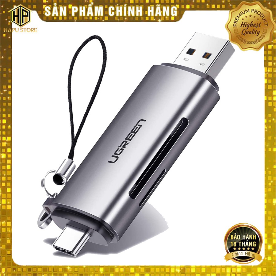 Đầu đọc thẻ nhớ SD/TF chuẩn USB Type C và USB 3.0 Ugreen 50706 chính hãng - Hapustore