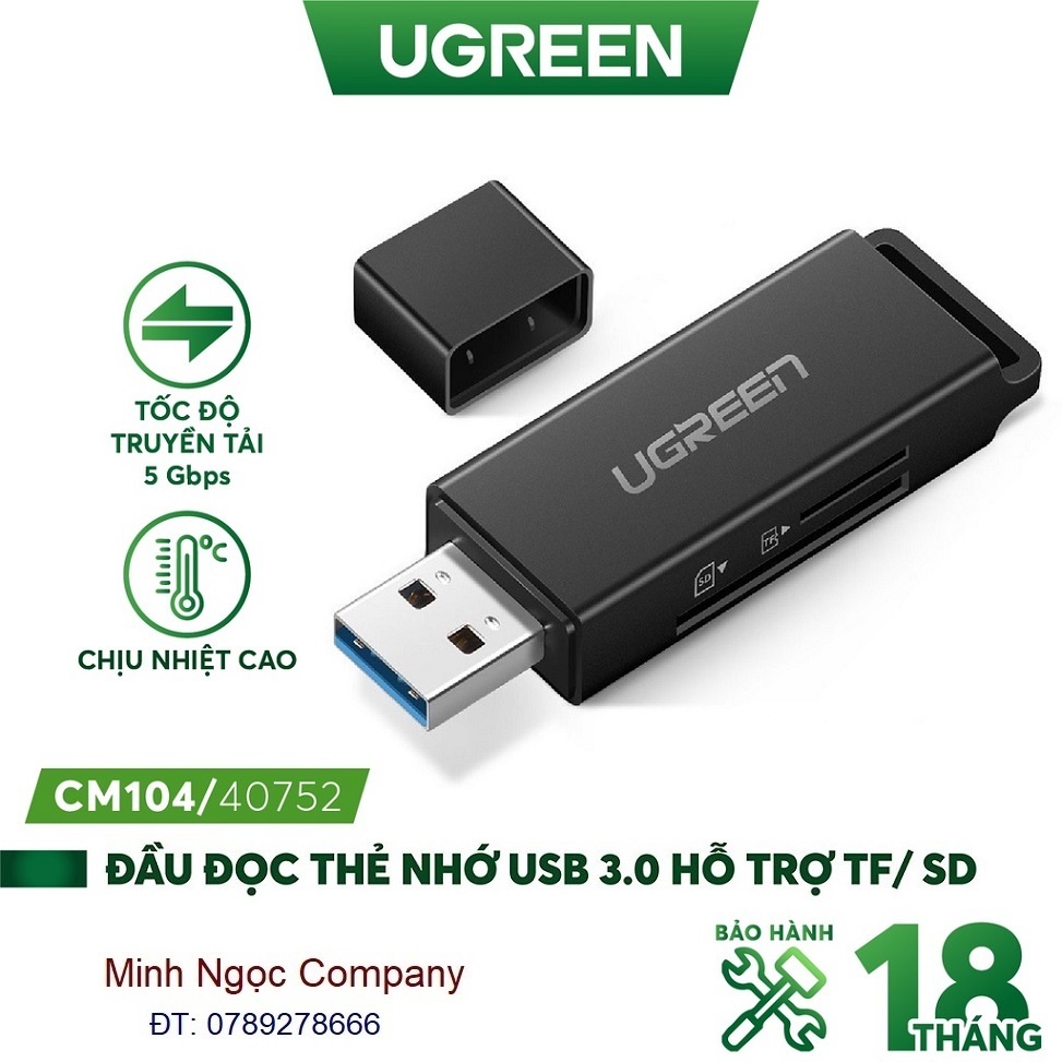 Đầu đọc thẻ nhớ SD/TF Jack cắm USB 3.0 UGREEN CM104 - Hàng phân phối chính hãng