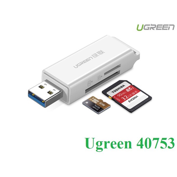 Đầu đọc thẻ nhớ SD/TF Ugreen 40753 chuẩn USB 3.0 chính hãngĐầu đọc thẻ nhớ SD/TF Ugreen 40753 là phụ kiện sử dụng để kết nối TF, Micro SD, Micro SDXC, Micro SDHC, M) // SD (SD, SDXC, SDHC với máy tính, laptop thông qua cổng USB 3.0 hỗ trợ tốc độ cao lên đến 5 Gbps