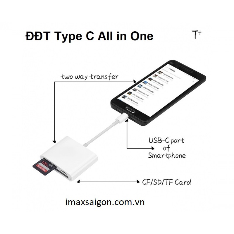 Đầu đọc thẻ All in One Type C cho Mac, Điện thoạiĐầu đọc thẻ All in One cổng Type C có 3 khe: