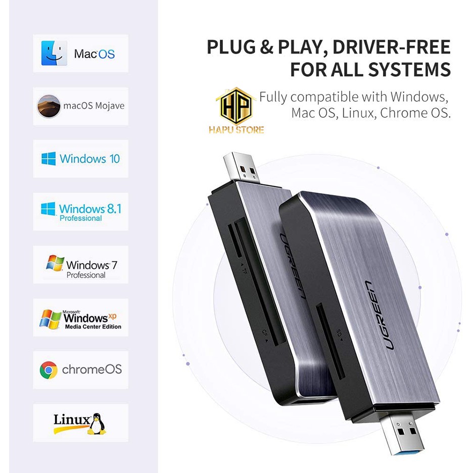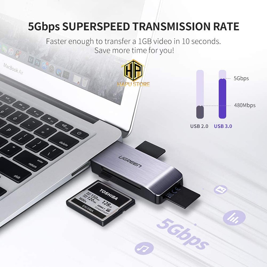 Đầu đọc thẻ USB 3.0 hỗ trợ SD/TF/CF/MS Ugreen 50541 chính hãng - Hapustore