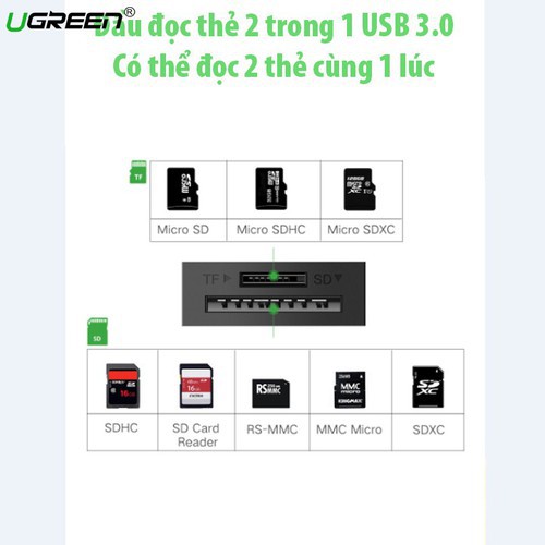 Máy tính & Laptop > Phụ Kiện Máy Tính > Bộ chia cổng USB & Đọc thẻ nhớ || Đầu Đọc Thẻ USB 3.0 hỗ trợ SD/TF Ugreen 20250 - Hàng Chính HãngCòn hàng
