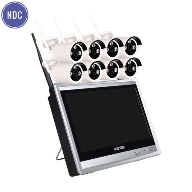 Đầu Ghi 4/8 Camera FullHD 2.0MP IP Wifi Hồng Ngoại NVR Kit 12.5 inch LCD