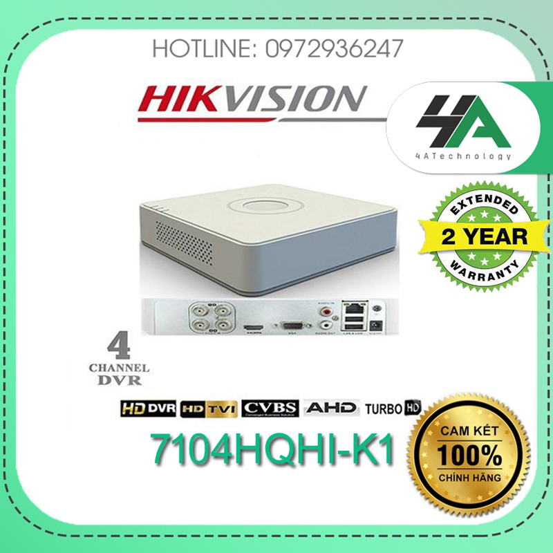 Đầu ghi hình analog TVI-IP 4 kênh HIKVISION 7104HQHI-K1 (S), hỗ trợ cam liền mic (chính hãng Hikvision Việt Nam)