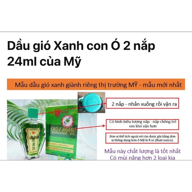 Dầu gió xanh Con Ó 2 nắp 24ml Mỹ