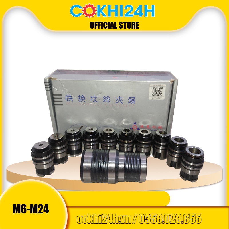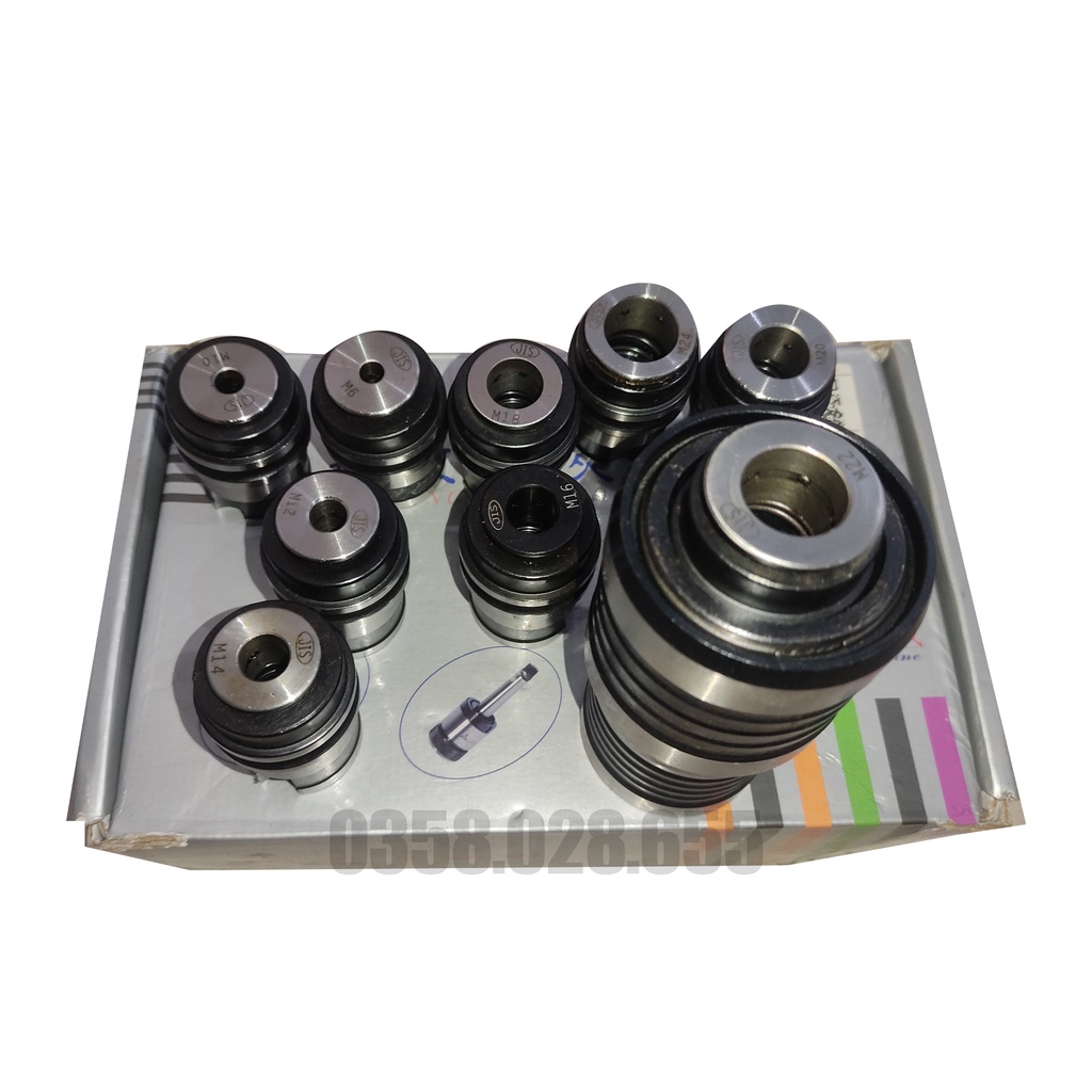 - Bộ L0624B22: Gồm 1 cán và 10 collet cặp taro M6, M8, M10, M12, M14, M16, M18, M20, M22, M24 chuẩn JIS.