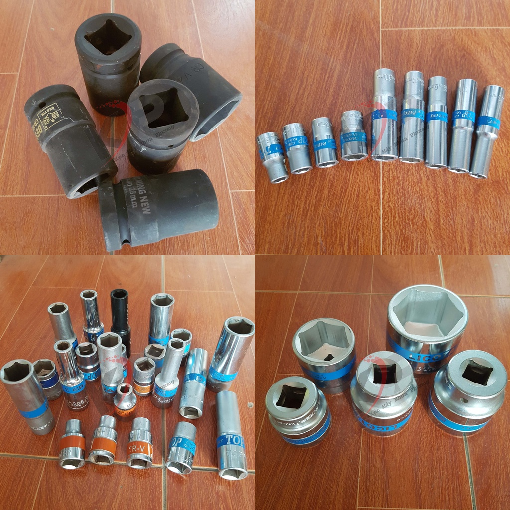 Đầu khẩu 1/2 inch, 3/4 inch, 1 inch các khẩu 22, 23, 24, 26, 27, 28, 29, 30, 32. Chụp bu lông 1/2 inch, 3/4 inch, 1 inch