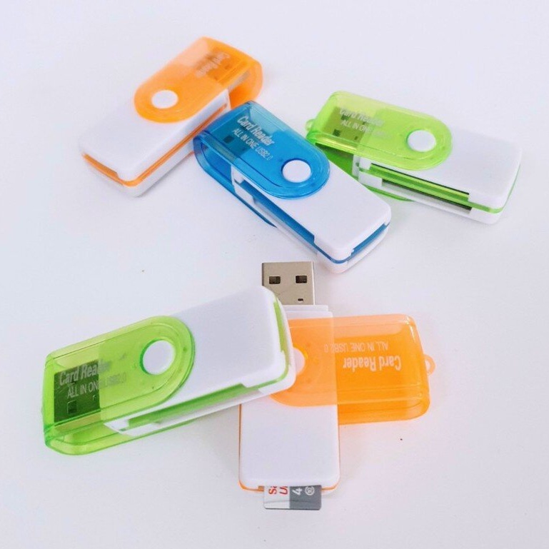 ĐẦU ĐỌC THẺ NHỚ [ĐẦU LỌC THẺ NHỚ] ĐA NĂNG NẮP XOAY 4IN1 VỎ NHỰA DÙNG ĐƯỢC CHO NHIỀU LOẠI THẺ- Bạn là người yêu thích công nghệ kỹ thuật số. Bạn thường xuyên chép hình ảnh, file nhạc, phim từ máy tính sang điện thoại di động hay sao chép hình từ máy ảnh sang máy tính cá nhân. Tuy nhiên, đầu đọc thẻ nhớ bạn đang sử dụng lại không có chức năng đọc được tất các loại thẻ, bạn phải dùng nhiều đầu đọc khác nhau cho thẻ nhớ điện thoại, máy chụp hình…Bạn muốn sở hữu một sản phẩm đọc được tất cả các loại thẻ nhớ đang dùng nhưng phải thật nhỏ gọn và thời trang. Đầu đọc thẻ nhớ đa năng chính là sản phẩm mà bạn đang tìm kiếm. Shopee.vn/grandstore