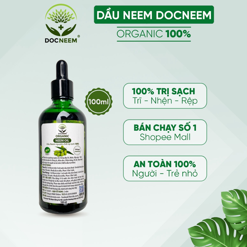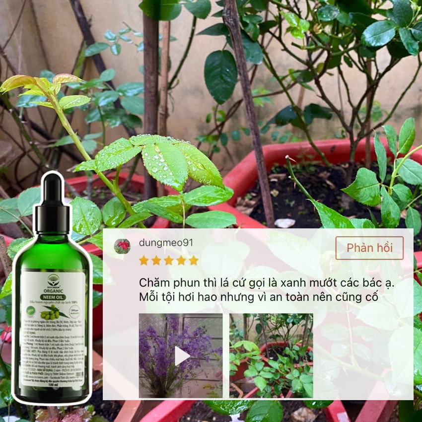 Dầu neem oil DOCNEEM hữu cơ phòng trị sâu bệnh hoa hồng, phong lan, cây cảnh, nguyên chất ép lạnh