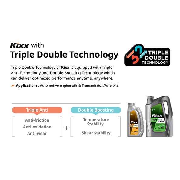 Triple-Anti bao gồm 3 công nghệ Chống ma sát, Chống oxi hoá và Chống mài mòn, Còn Double Boosting bao gồm 2 công nghệ Ổn định nhiệt độ và Ổn định chuyển động.