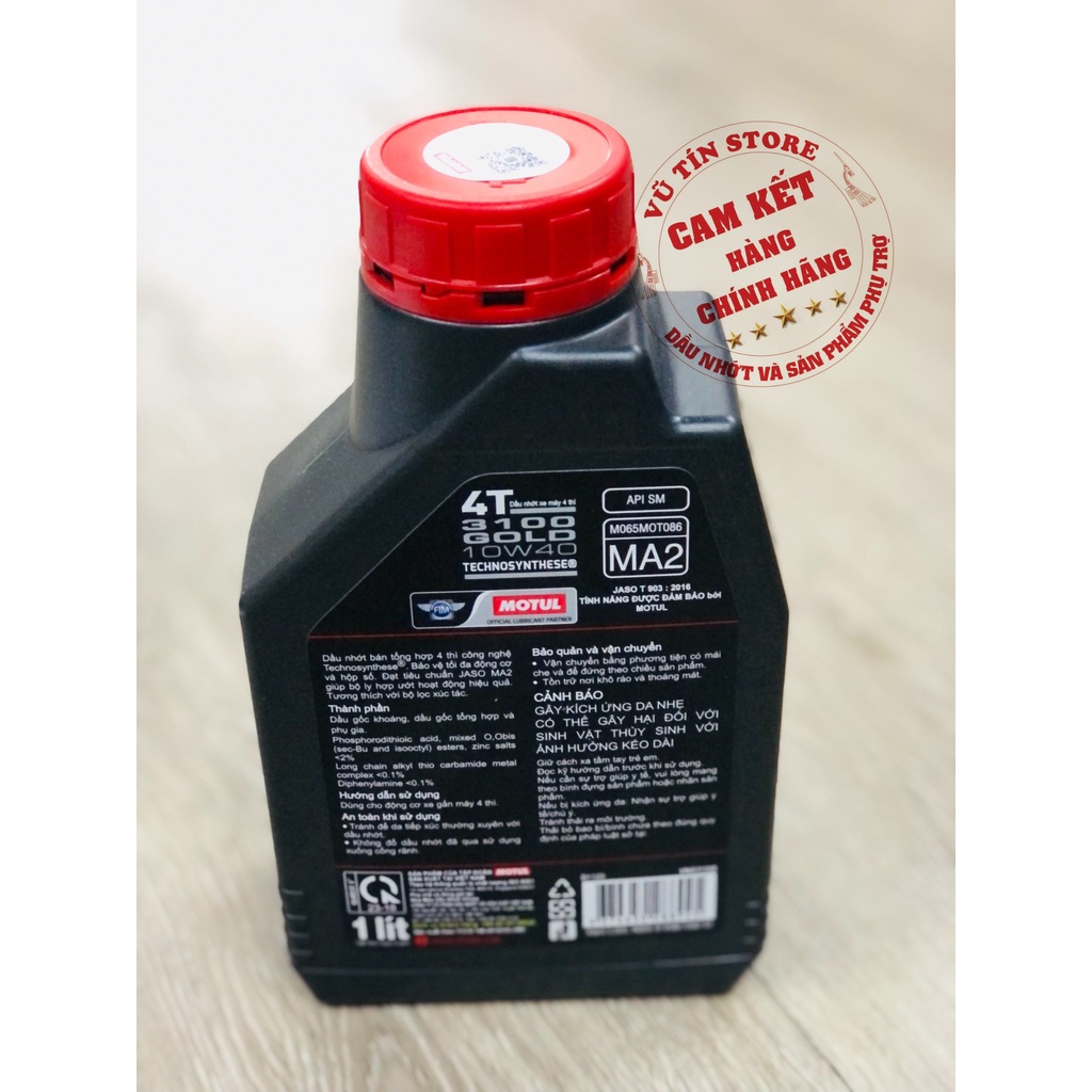 Dầu nhớt động cơ MOTUL 3100 Gold 10W-40 Sử dụng cho các loại động cơ 4 thì của xe gắn máy đời mới, công suất mạnh chạy đường trường, địa hình của các hãng như Honda, Yamaha, Suzuki, SYM… yêu cầu độ nhớt phù hợp.ƯU ĐIỂM: