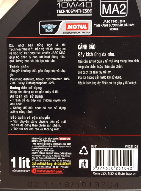 Sản xuất bởi: Tập đoàn Motul, sản xuất tại Việt NamXuất xứ: VIỆT NAM