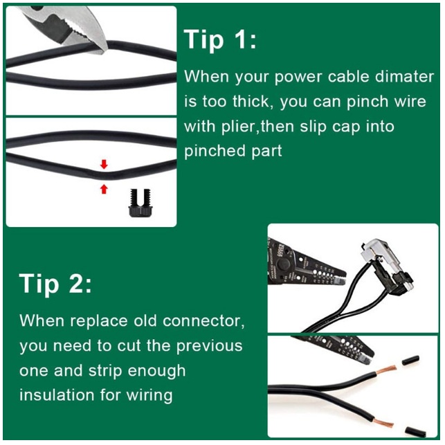 - Lưu ý: chỉ sử dụng sản phẩm để kết nối cho hệ thống điện áp thấp (Ví dụ: điện áp 12V, 24V,...) không sử dụng cho lưới điện sinh hoạt. Sử dụng cho cả điện AC và DC.