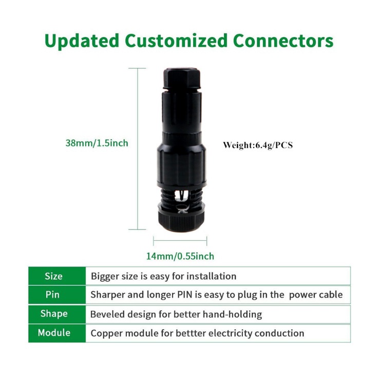 - Sản phẩm được làm từ chất liệu nhựa cao cấp. Bộ phận tiếp điện được làm bằng Đồng phủ Niken, nâng cao hiệu suất truyền tải và chống oxy trong điều kiện ngoài trời.