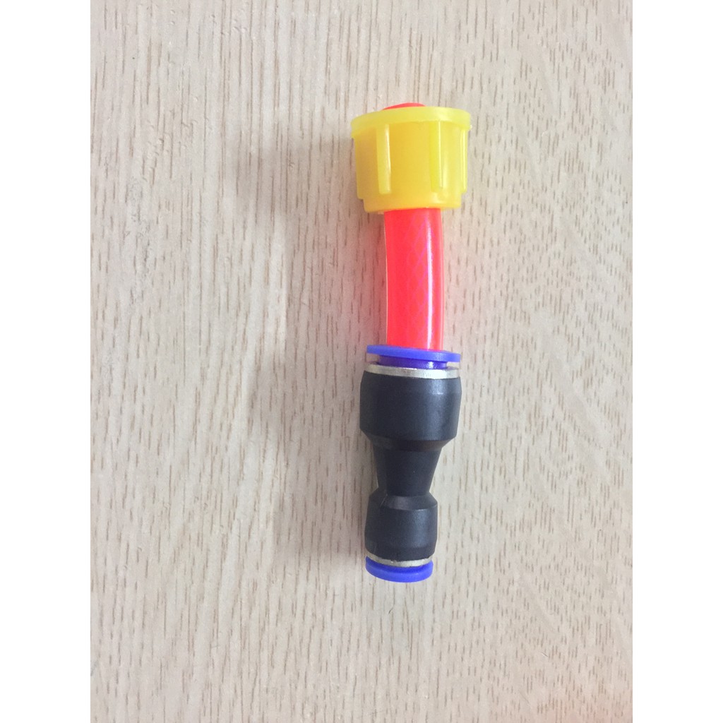Đầu nối từ bơm đôi ra ống hơi 8mm1 đầu ren trong 13mm để nối với đầu ra của bơm đôi phun sương 12v