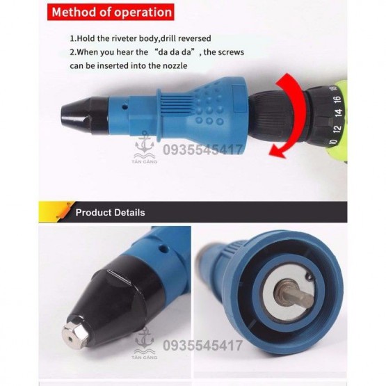 - Đầu rút rive - đầu rút đinh tán- Bộ kít chuyển đổi máy khoan thành rút đinh tán, đầu rút rive