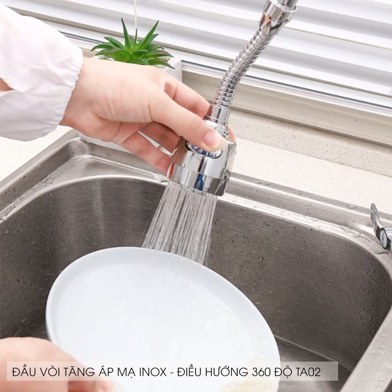 Đầu vòi tăng áp mạ inox- 2 chế độ- điều hướng 360 độ TA02