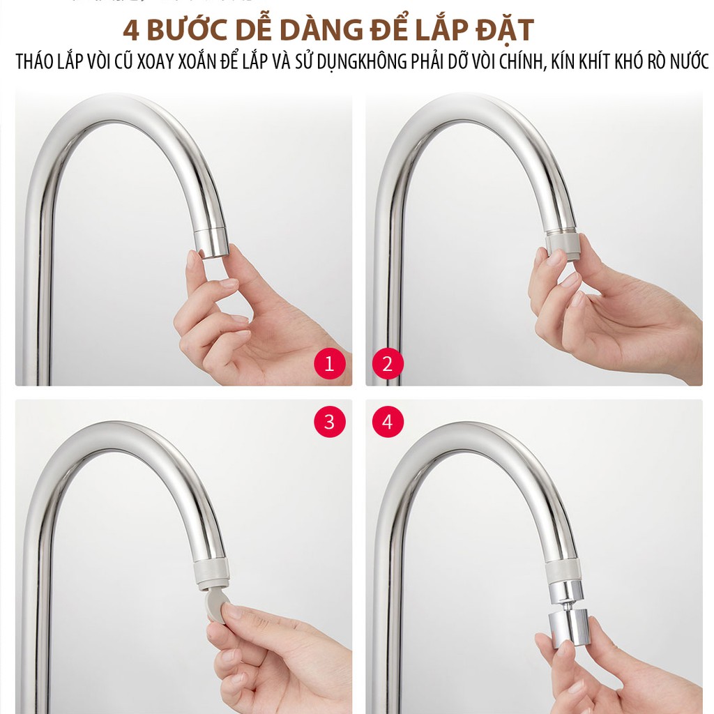 ☑️ Đặc biệt hơn nữa ĐẦU VÒI RỬA BÁT TĂNG ÁP 360 ĐỘ thông minh có khả năng điều chỉnh góc nước đến 360 độ, tăng phạm vi và thời gian làm sạch, ngoài ra đầu vòi còn có khả năng tích hợp hai chế độ phun linh hoạt, giúp người dùng dễ dàng lựa chọn để sử dụng. Chế độ nước vòi sen làm cho dòng nước nhẹ và thoải mái , phù hợp để rửa các vết bẩn chén bát. Chế độ tạo bọt sẽ làm cho dòng nước mạnh và tập trung, phù hợp để rửa trái cây…Và bạn chỉ cần xoay nhẹ phần đầu bên dưới là có thể chuyển đổi giữa hai chế độ.