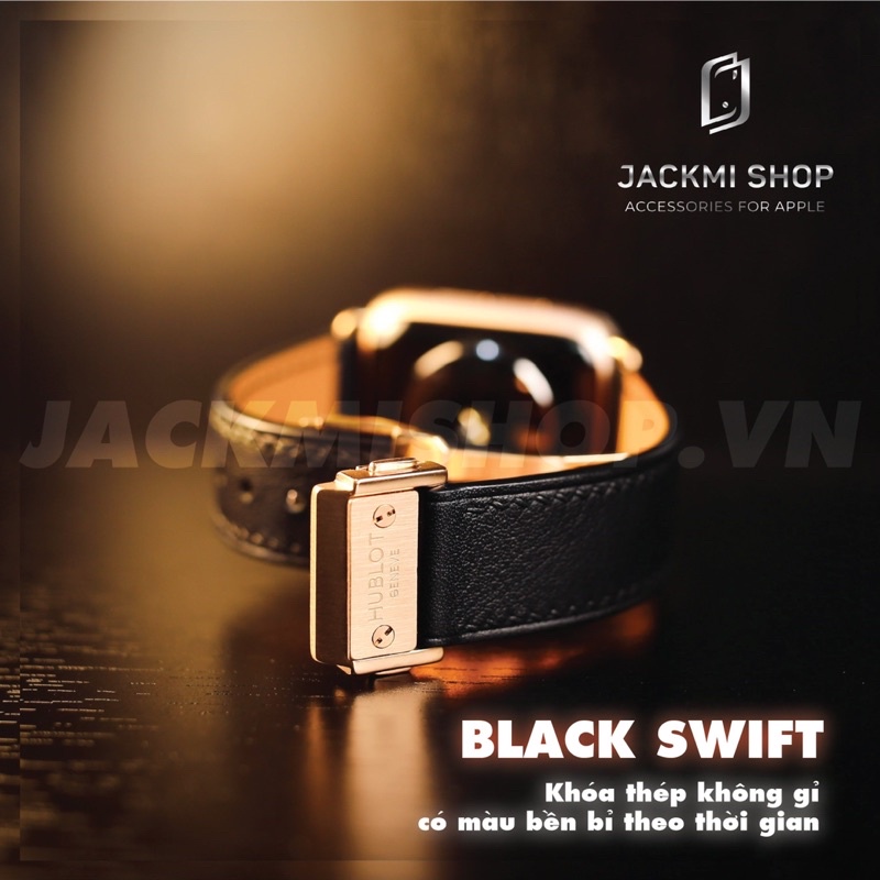 Giới thiệu Dây Apple Watch Da BÊ SWIFT màu đen khóa hublot cho series 1 2 3 4 5 6 7 SE 38mm 40mm 41mm 42mm 44mm 45mm bảo hành 1 năm
