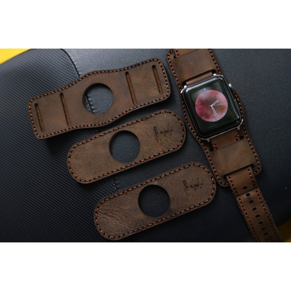 Dây Apple Watch , iWatch , iphone Watch da bò nâu đất kèm tấm đệm chống mồ hôi RAM Leather bundstrap b1