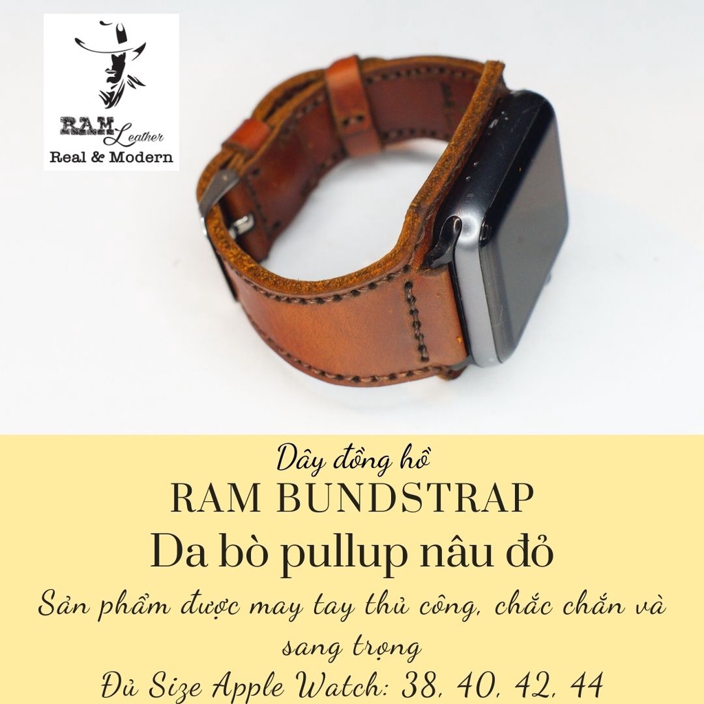 Dây apple watch da bò thật handmade bền chắc cực đẹp RAM Leather - tặng khóa chốt và adapter