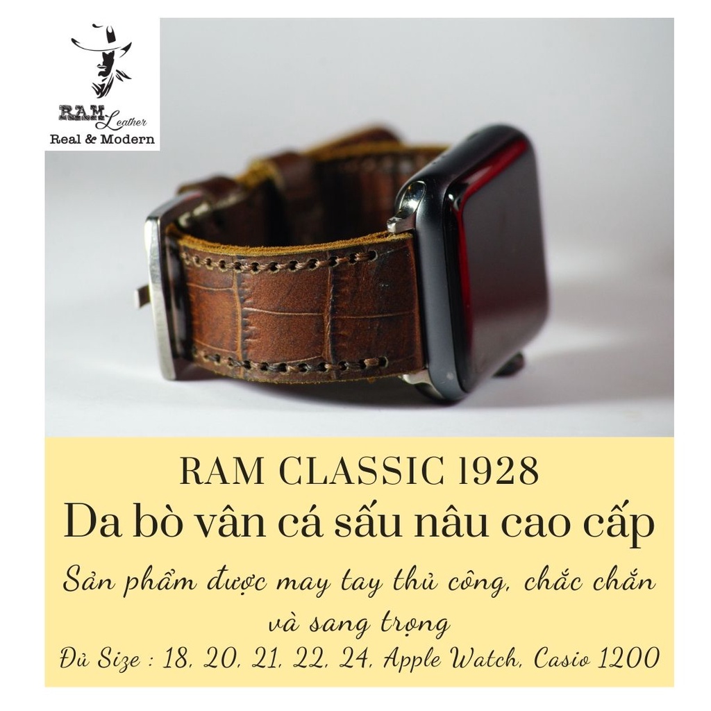 Điện Thoại & Phụ Kiện > Phụ kiện > Phụ kiện cho đồng hồ thông minh || Dây apple watch da bò vân cá sấu RAM Leather classic 1928 handmade bền chắc cực đẹp - tặng khóa chốt và adapterCòn hàng