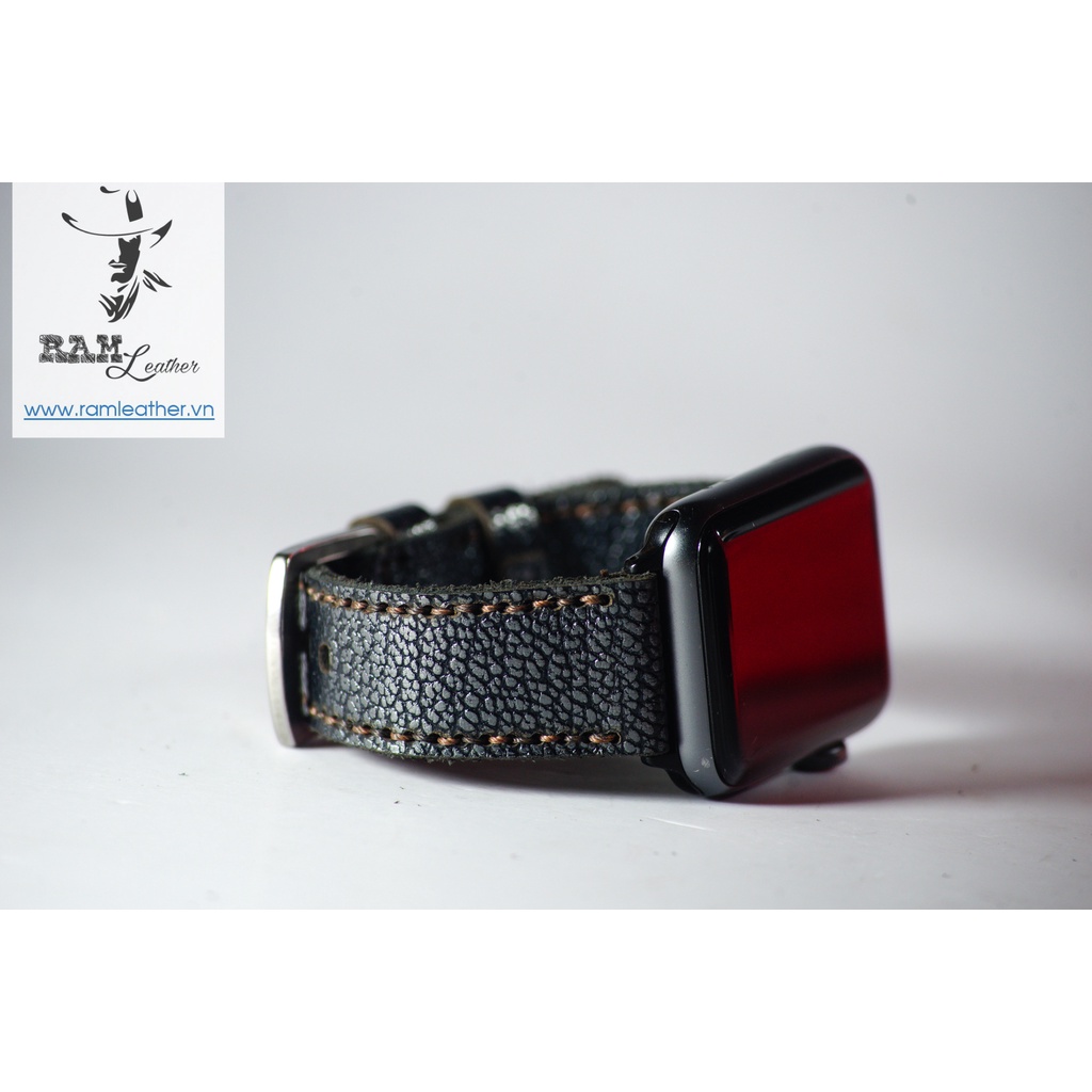 Dây Apple Watch , iWatch , iphone Watch da bò vân cá mập vintage RAM Leather classic 1956 đen thép