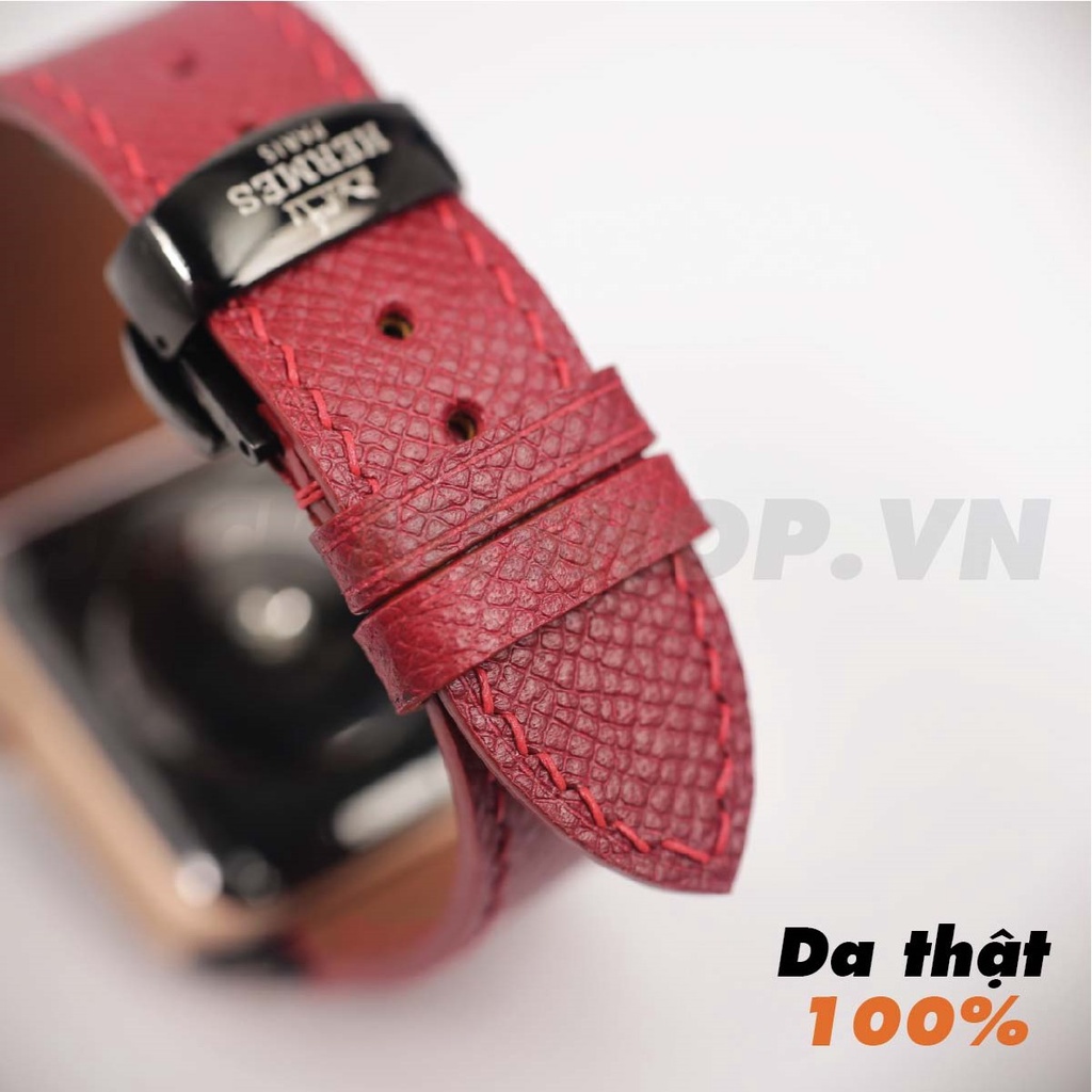 Dây Apple Watch Da EPSOM màu đỏ đô khóa bướm cho series 7 6 SE 5 4 3 2 1 41mm 45mm 42mm 38mm 40mm 44mm bảo hành 1 năm