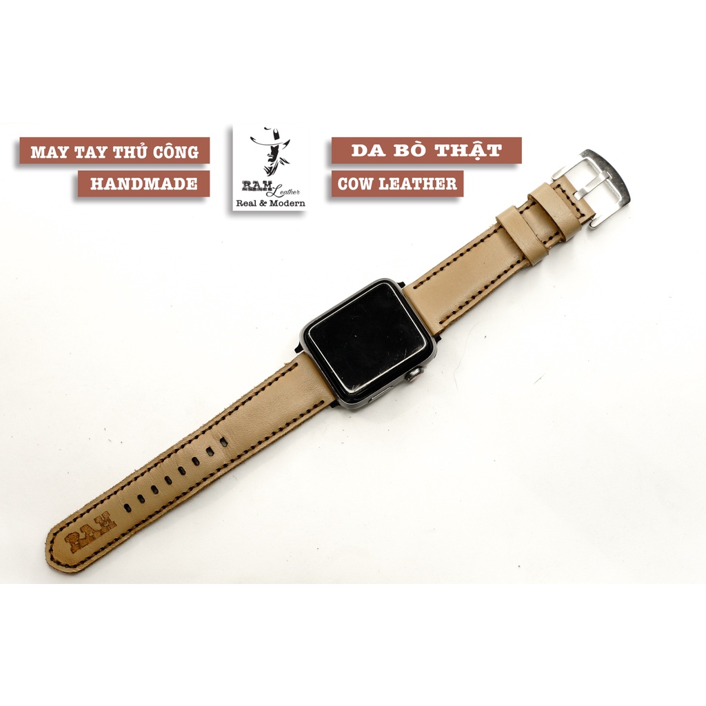 Dây Apple Watch , iWatch , iphone Watch da bò màu trà sữa RAM Leather Milk Tea