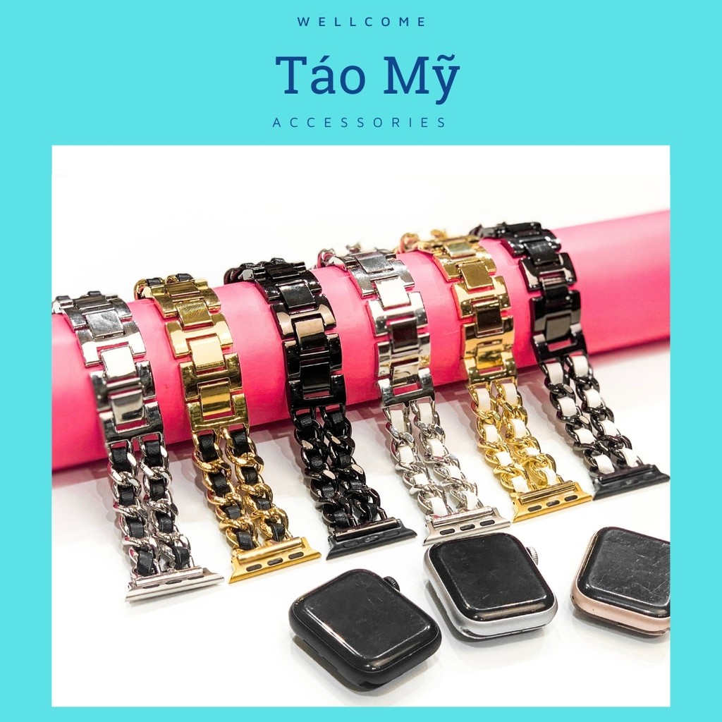 Dây Apple Watch Thép Liền Da Phối Cực Sang Trọng Dành Cho Nữ Chỉ Có Size 38/40mmChất Liệu Kim Loại Phối Da