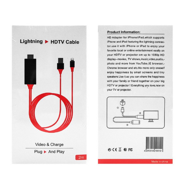 - Ưu điểm Dây cáp kết nối Lightning To HDMI là cho xuất hình ảnh, âm thanh trung thực, sắc nét. Sản phẩm dùng được trên tất cả điện thoại iPhone / iPad. Độ dài cáp lên đến 2m, thoải mái kết nối với Tivi hay Máy chiếu thông qua cổng HDMI (hỗ trợ Full HD 1080).