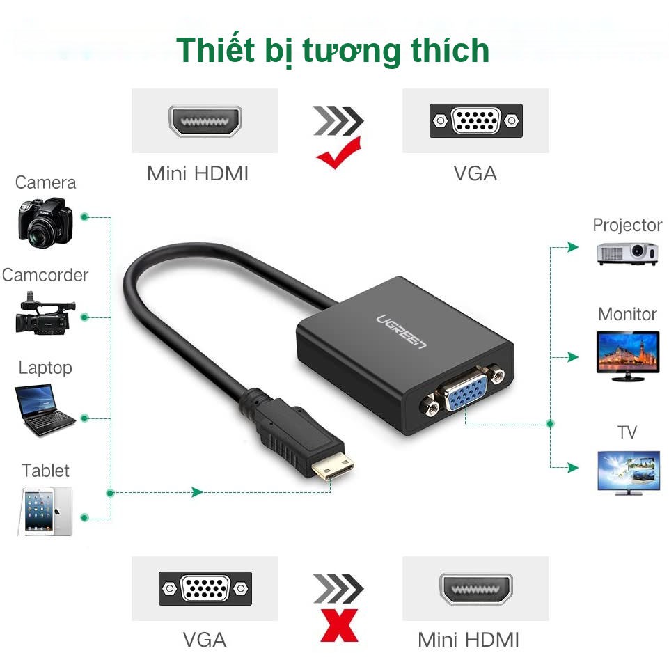 Máy tính & Laptop > Linh Kiện Máy Tính > VGA - Card Màn Hình || Dây cáp chuyển đổi Mini HDMI sang VGA cái dài 16CM UGREEN MM112Còn hàng