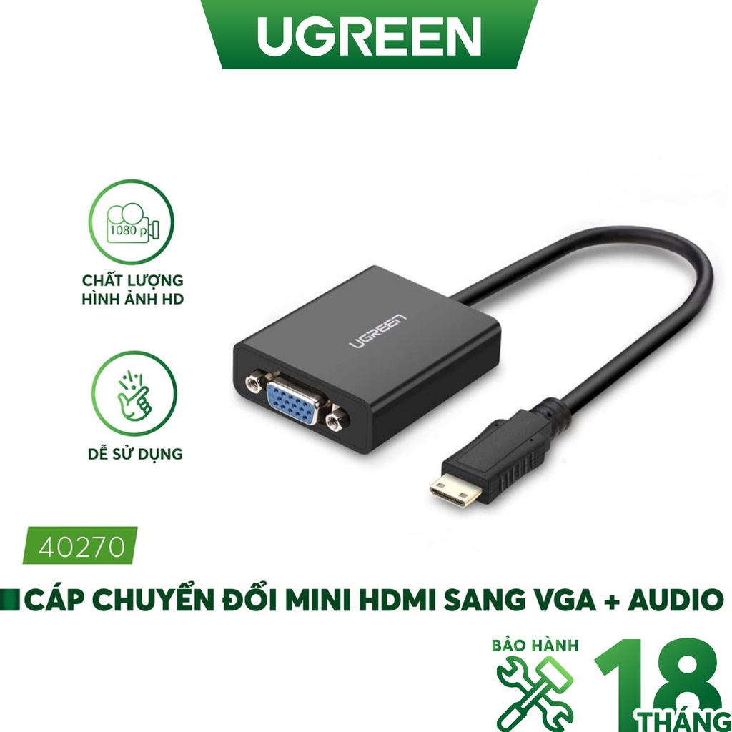 Cáp chuyển tín hiệu từ Mini HDMI sang VGA 40217 là sản phẩm chính hãng UGREENHỗ trợ truyền hình ảnh, âm thanh từ Laptop, Camera HD, HDTV sang màn hình cổng VGA như: màn hình LCD, TV, Máy chiếu với độ phân giải cao