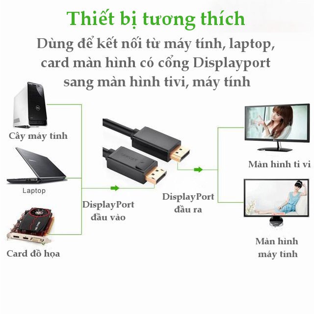 Giới thiệu Dây cáp DisplayPort 1.2 hỗ trợ 3D 4K*2K 60Hz UGREEN DP107