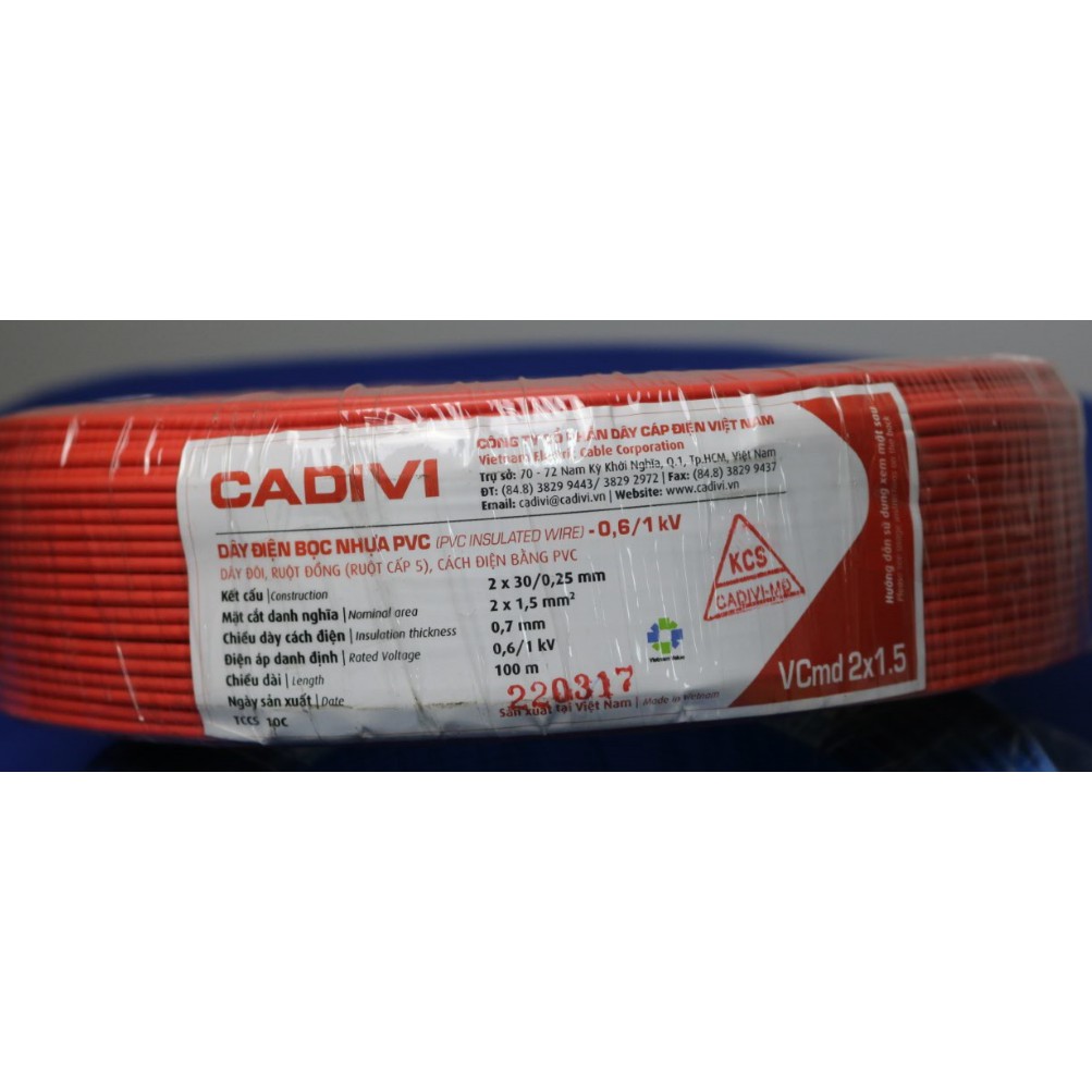 Giới thiệu Dây cáp đôi Cadivi VCmd2x1.5 (cuộn 100m)
