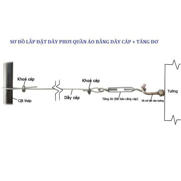 Giới thiệu Dây cáp lụa bọc nhựa 6mm làm dây phơi, chằng chống giằng kéo cột, buộc đồ, cột đồ (set 1m)