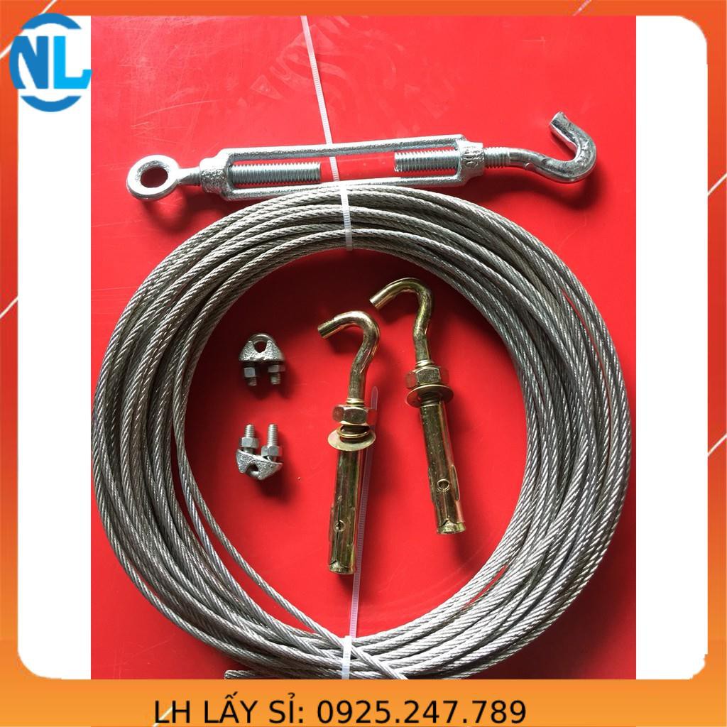 Dây cáp mạ phi 2x20m tặng 2 khóa cáp, 2 nở sắt,,1 tăng đơ, dây cáp mạ kẽm, cáp, cáp lụa mạ kẽm cáp thép giá sỉ