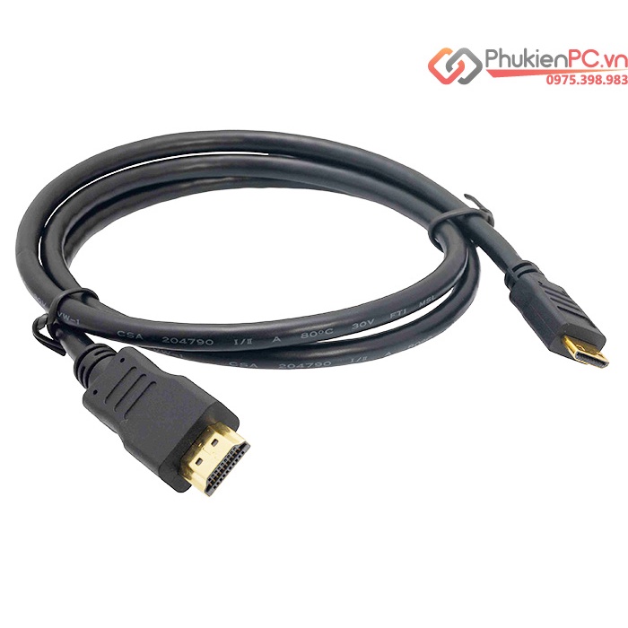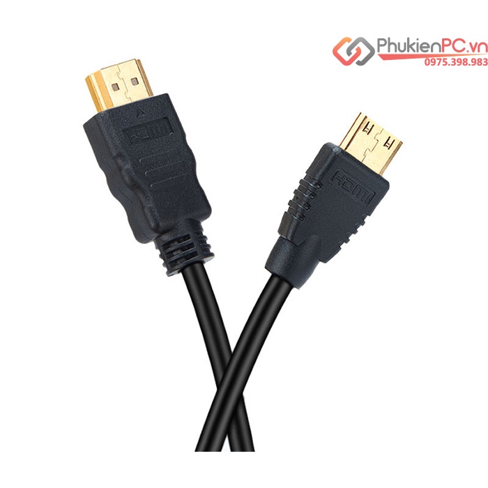 Dây cáp chuyển đổi Mini HDMI to HDMI Male chân đực (Mini HDMI type C to HDMI type A). Chuyển đổi qua lại 2 chiều giữ Mini HDMI và HDMI.Sử dụng kết nối một số thiết bị có Mini HDMI: máy ảnh, máy quay phim, tablet, điện thoại, box tivi, board mạch điện tử…ra Tivi, LCD, máy chiếu.