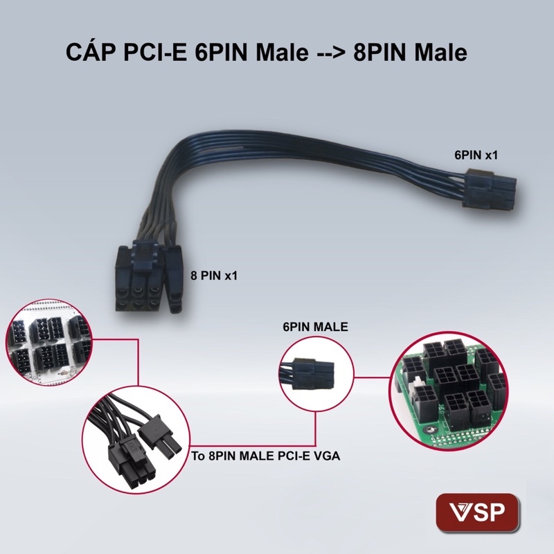 Cáp chuyển nguồn từ 6 Pin sang 8 Pin cho VGA- Cáp chuyển nguồn 1 đầu 6Pin sang 8Pin .