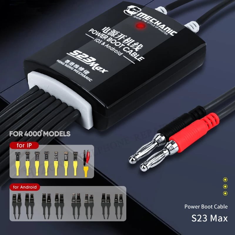 Giới thiệu Dây cấp nguồn iPhone và Android Mechanic S23Max (7 đầu iPhone từ 5S đến 12, 16 đầu Android và bộ đầu kẹp cá sấu)