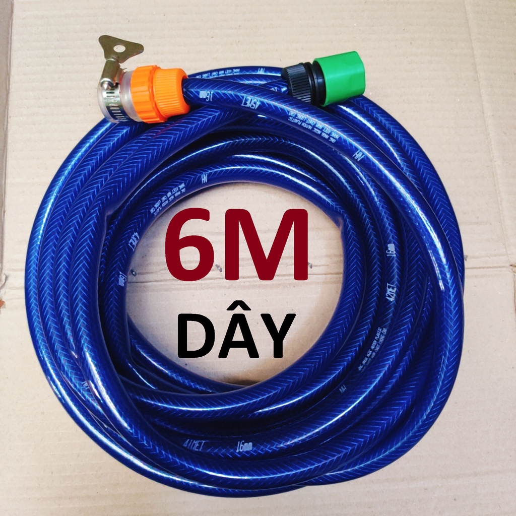 Dây cấp nước máy rửa xe gia đình 6m, dây dẫn nước đầu vào, đầu nối vòi máy nước tiện dụng có siết đai