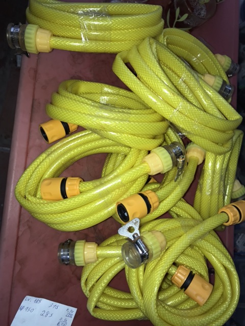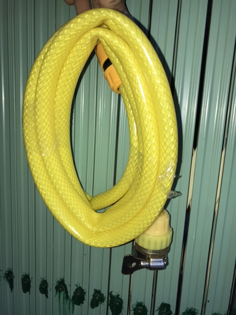 Day cấp nước dùng cho máy rửa xe mini vàng có đầu kẹp trực tiếp vào đầu vòi nước. 1 đâuuf còn lại cắm trực tiếp váo cút máyChiều dài:2.3-2.5 mét