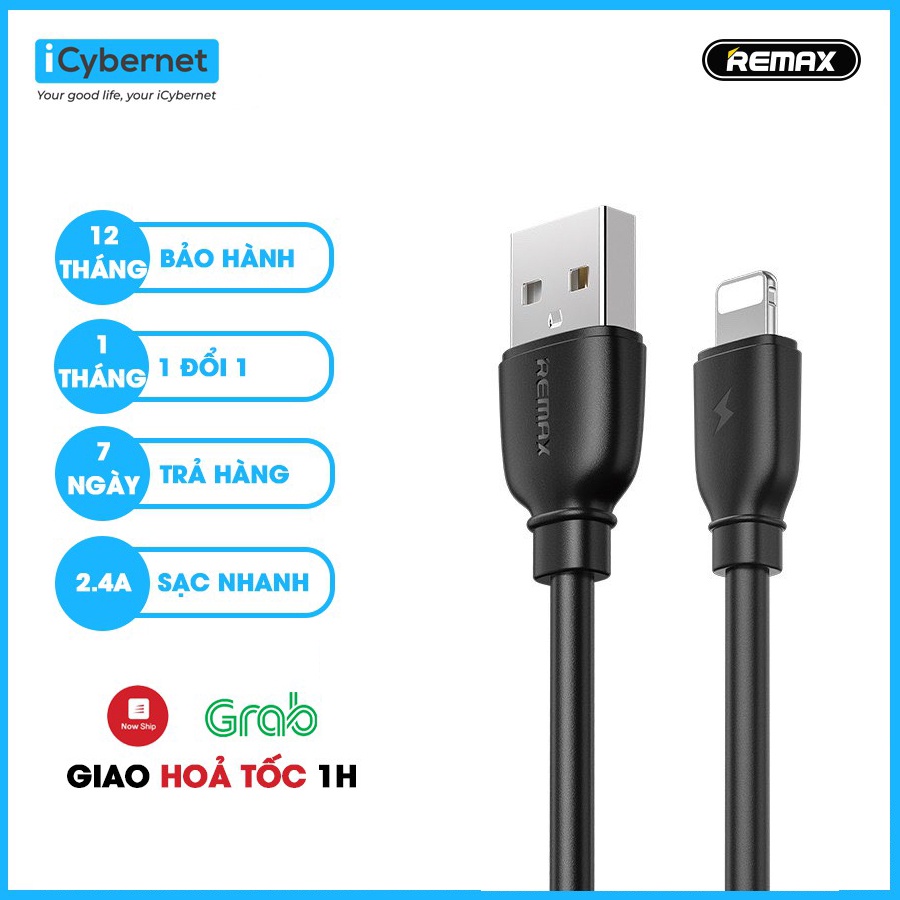 Điện Thoại & Phụ Kiện > Phụ kiện > Cáp, sạc & bộ chuyển đổi > Cáp & Bộ chuyển đổi di động || Dây cáp sạc ligtning và typeC chính hãng sạc nhanh 2.4A dài 1m ICYBERNET REMAX RC138Còn hàng