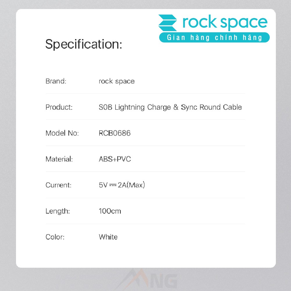 - Dây sạc iphone chính hãng Rockspace thiết kế và màu sắc,chất liệu theo chuẩn cáp chính hãng apple: dây tròn nhựa chống cháy, nhựa TPE siêu bền, đầu được bọc nhựa chống cháy ABS.