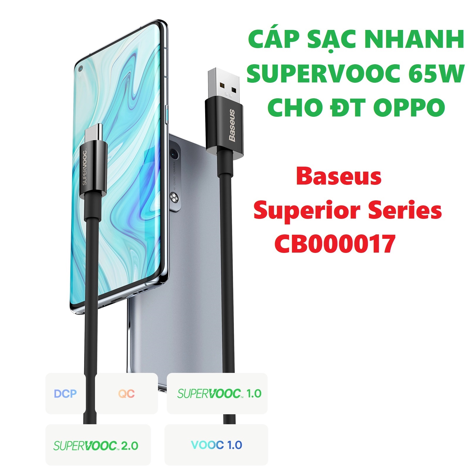 Dây cáp sạc nhanh SUPER VOOC Usb to C 65W cho điện thoại Oppo Baseus Superior Series CB000017_ Hàng chính hãng