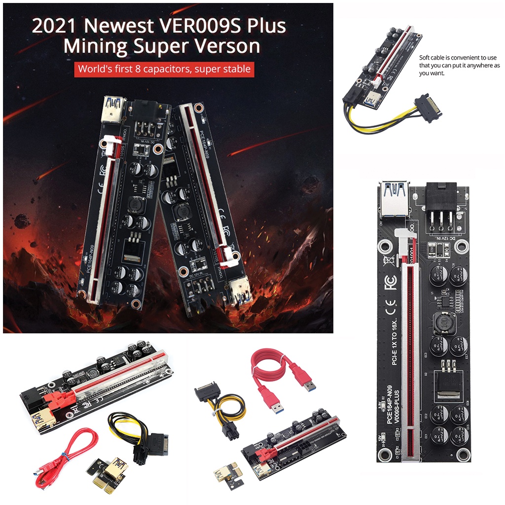 SẢN PHẨM: Dây Card Riser 009SPlus đen đỏ Có LED cổng USB vàng Mới 100% - Đào coin lắp VGA rời - Riser pci-e 1x to 16x dây usb 3.0 có cổng đơn và cổng 3Các tính năng:
